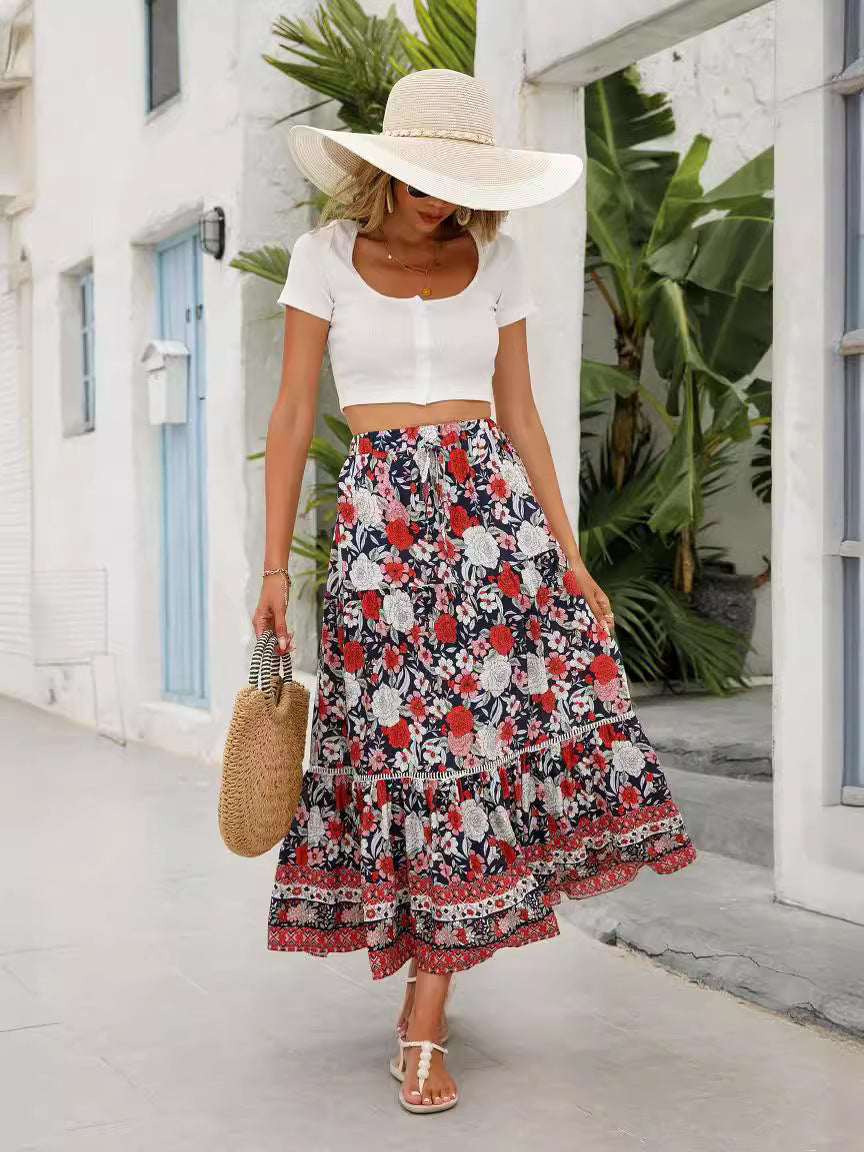 Maxi skirt cotton bohemian beach resort skirt